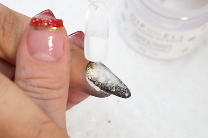 - Carefully apply a second coat of Step 2 Base and immediately dip finger at an angle into color powder. Repeat for more coverage.