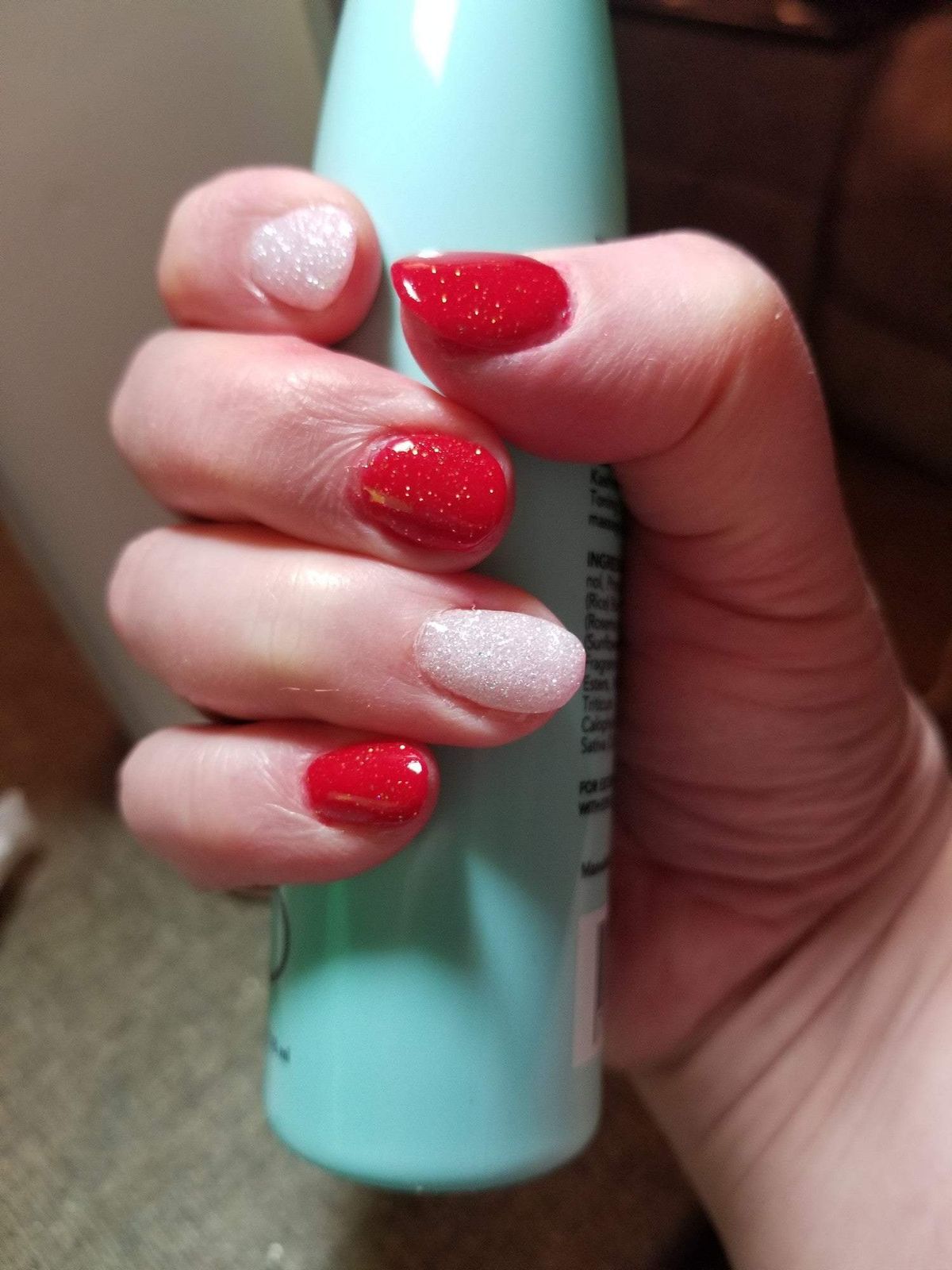 "Love this sparkly red and white holiday mani! GL08 and GL44."