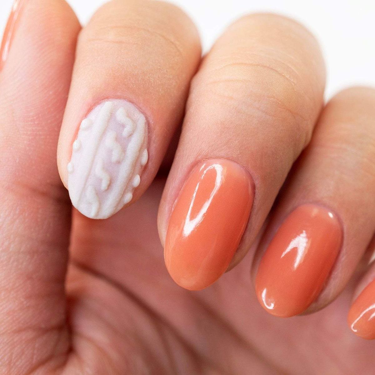 For next-level holiday nails, experiment with a 3D dip nail art like on the index finger above. It's appropriate for sweater weather and easy to nail with dip powder colors NA27 and NA19. Simply use a nail art brush to create the texture of the 3D sweater—the dots, the lines, and the curves. Watch the full tutorial here and embrace the coziness and comfort of holiday hygge nails.