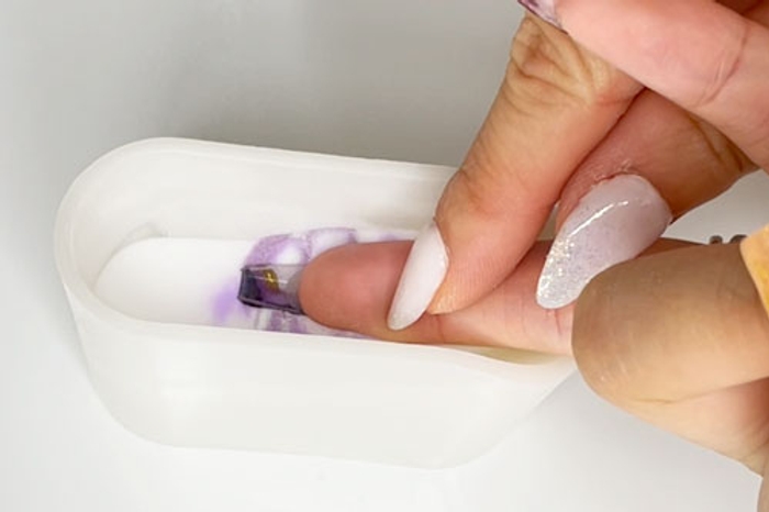 - Carefully lay fingernail flat into the powder mix.