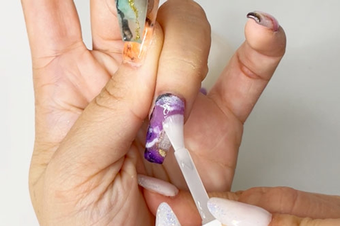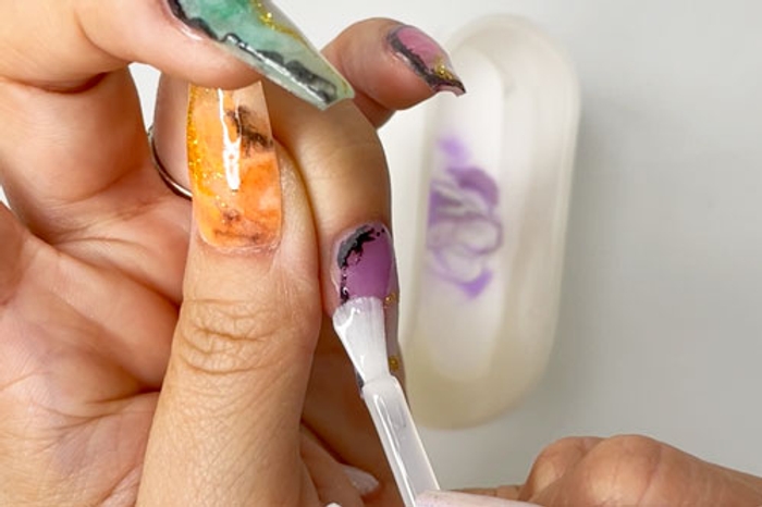 - Apply a coat of Step 4 Sealer in thin, quick strokes. Allow nails to dry for 2-3 minutes.