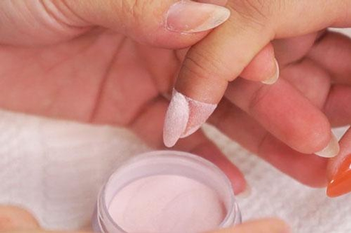 - Immediately dip into Base & Finish to seal powder pigments