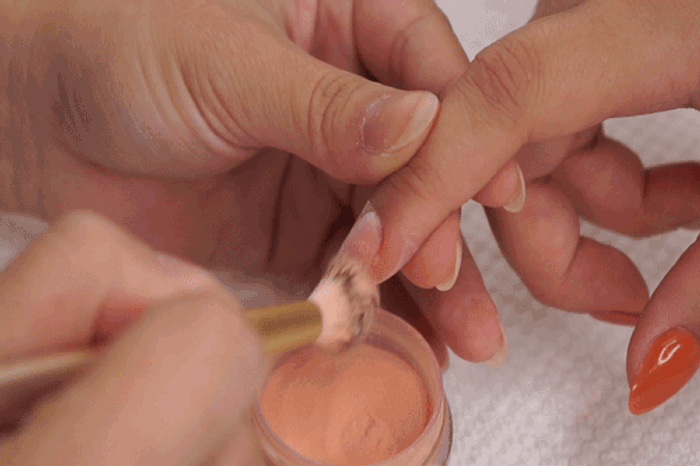 PRO TIP: The pigment from the acrylic powder will transfer onto the nail plate without increasing the amount of acrylic powder on the nail
