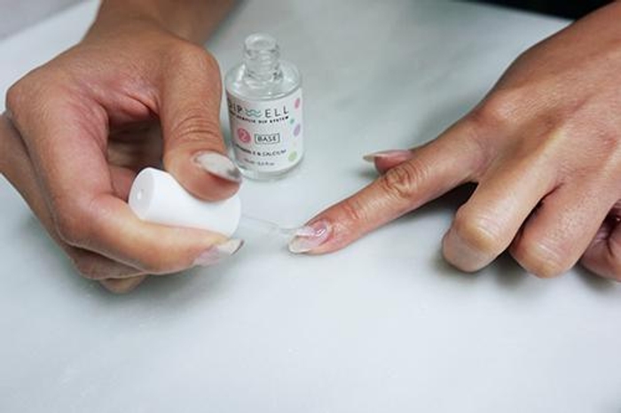 PRO TIP: Be sure to always paint and immediately dip one nail at a time before moving on to the next finger. This will prevent Step 2 Base from drying out and allow for more powder to adhere to the nail.