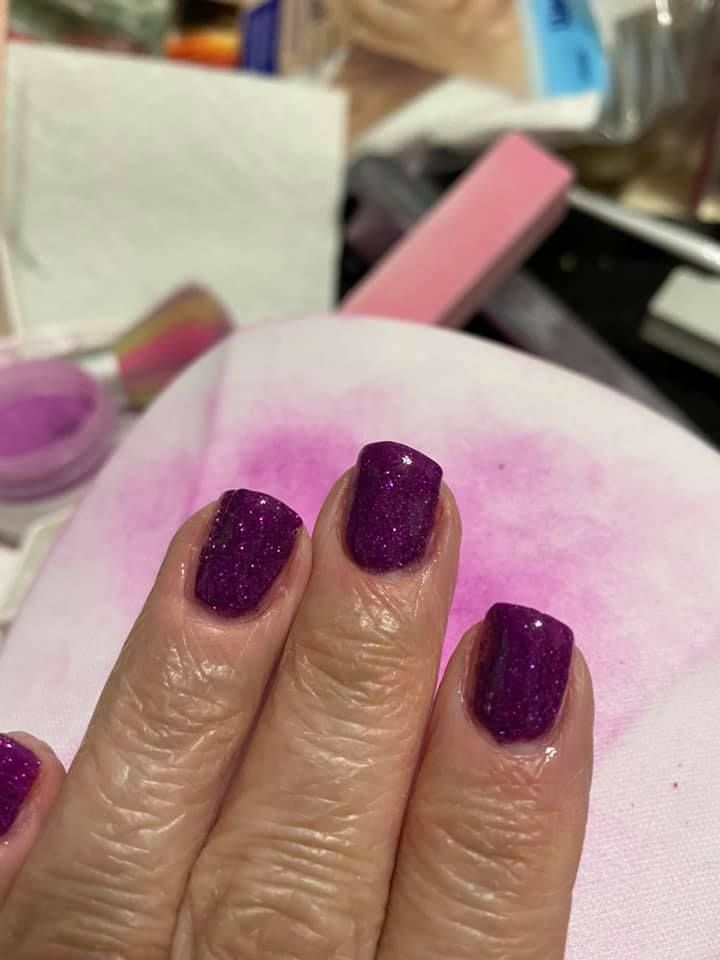 Shimmering birthday nails by Helen Moro. Rock the same simple birthday look using GL 30 Deep Purple glitter dip powder. It’s your birthday, you can sparkle if you want to.