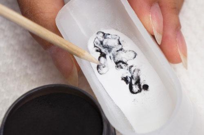 - Use a toothpick or pointed instrument to mix or swirl the powder, creating a marble effect