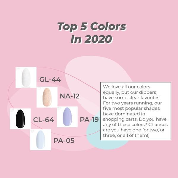 We love all our colors equally, but our dippers have some clear favorites! For two years running, our five most popular shades are: