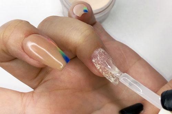 PRO TIP: Avoid getting the product onto cuticles, powder will pick up wherever Base if applied. Also make sure to tap off excess powder in between coats!