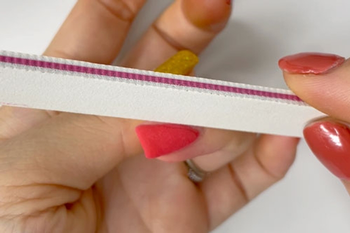 - Wash hands or use a lint-free wipe saturated in alcohol to wipe the nails clean from filing debris.