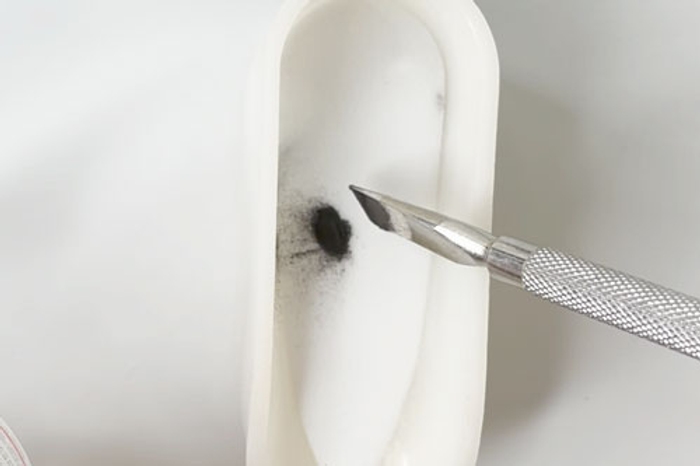 - Using a pointed tool, gently swirl CL64 into the Base & Finish powder.