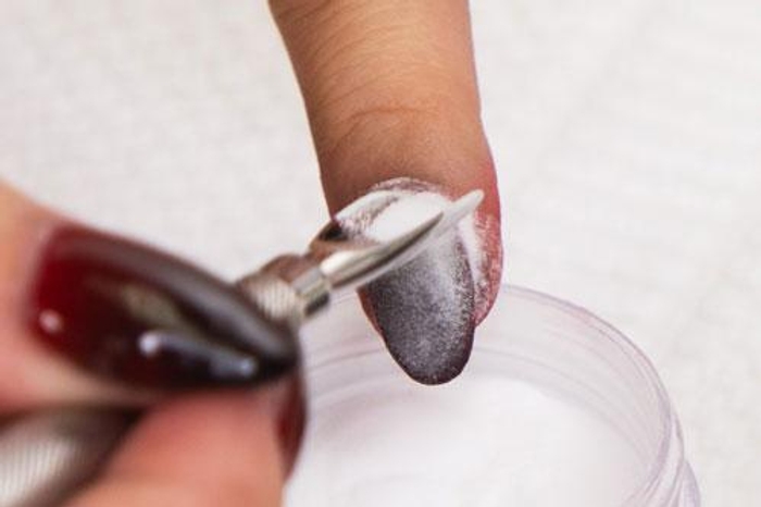 - The pigment from the acrylic powder will transfer onto the nail plate without increasing the amount of acrylic powder on the nail