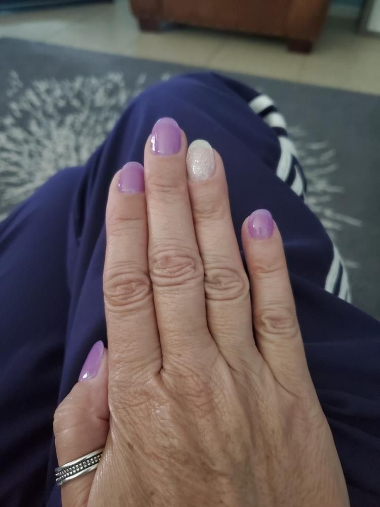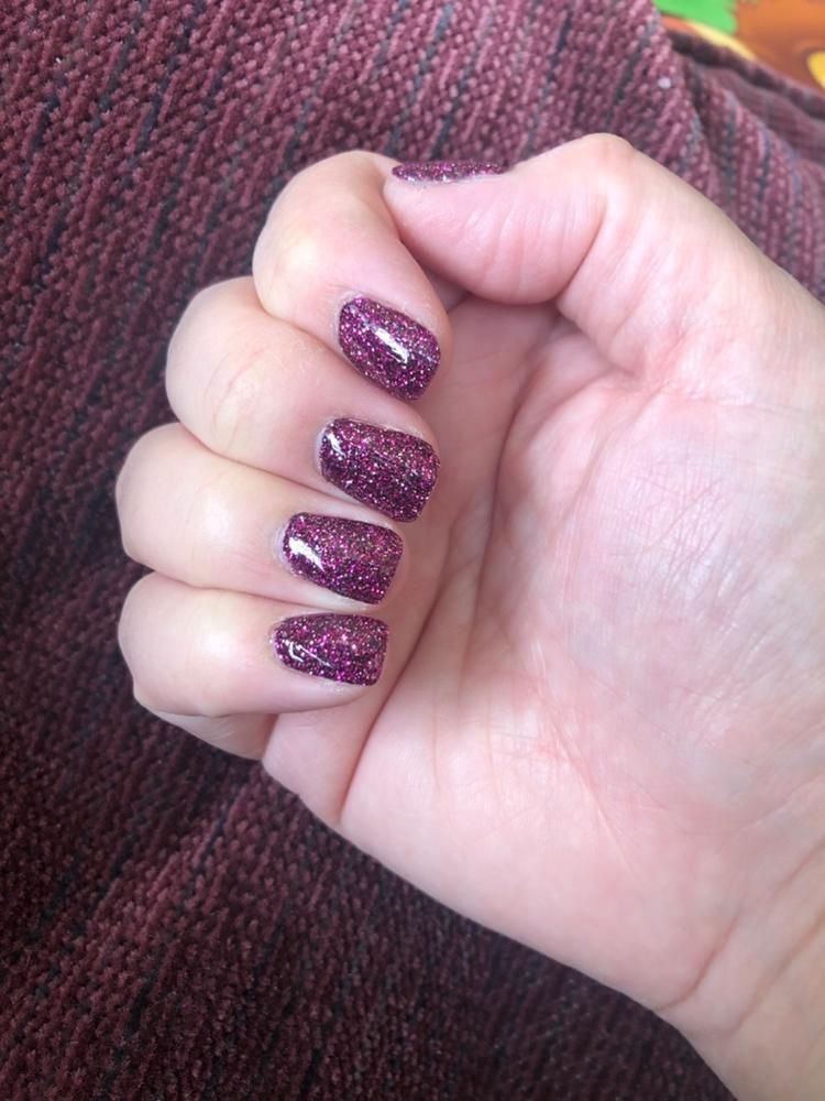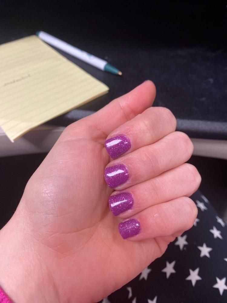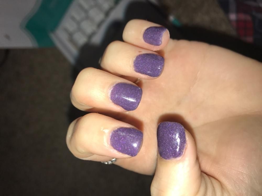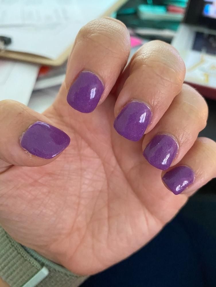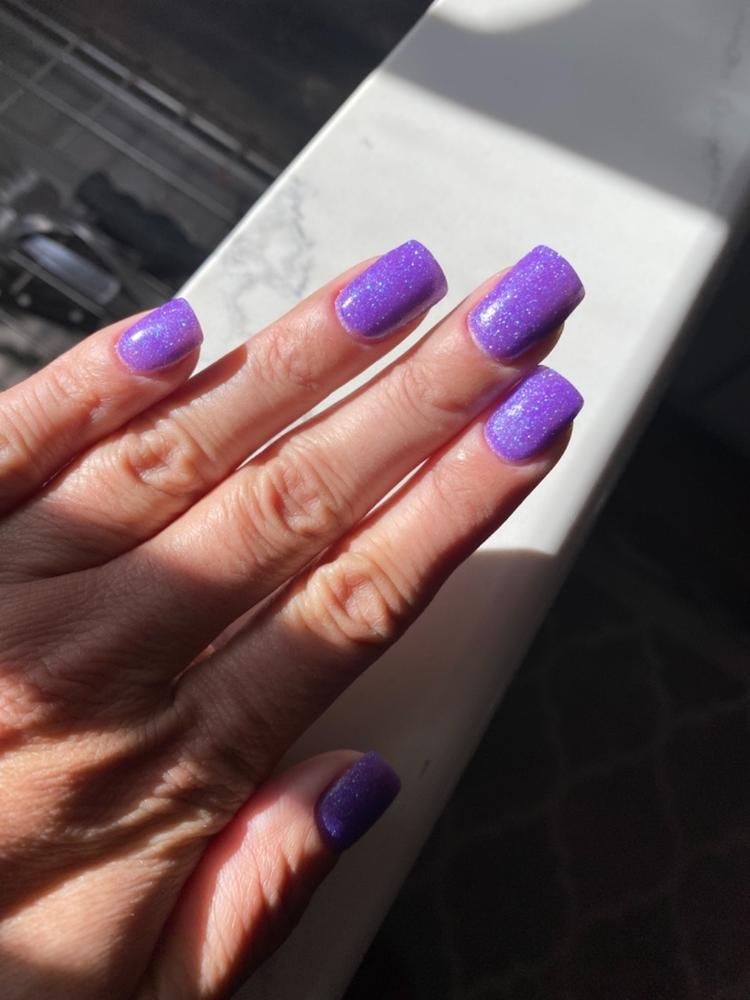 A lovely purple manicure — featuring CL25 Pearly Purple dip powder — with just the right amount of fine-grain glitter that beautifully sparkles under the sun. Image by Terry Y.