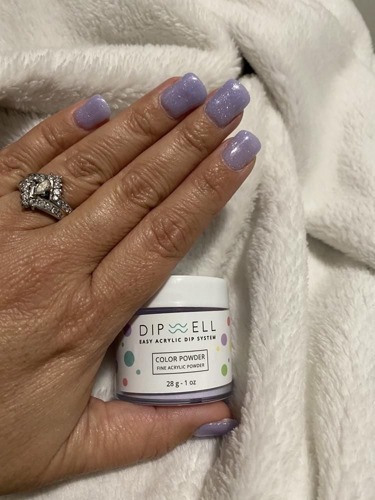 A little purple, a little blue. That's PA19 Light Periwinkle dip powder. It's a very cute color to include in your pastels. Image by Katie.