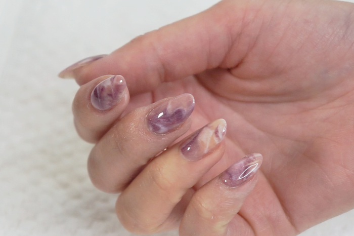 Beautifully transparent light purple manicure featuring JL04 Purple Jelly dip powder. For a similar accent nail, apply JL01 Clear Jelly dip powder and make it a little more opaque. Image by Siggi K.