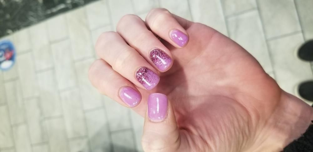 PA08 Warm Violet dip powder that edges toward a pretty sparkly light pink. You can't go wrong with a touch of glitter, too! Image by Alisha D.