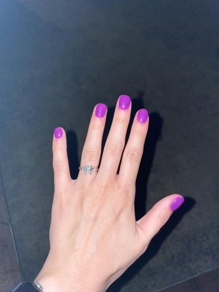 A mani that gives off springtime vibes in the dead of winter, featuring CL7 Classic Lilac dip powder. It's a striking shade of pink/purple with a really pretty shimmer all throughout. Image by Kim.