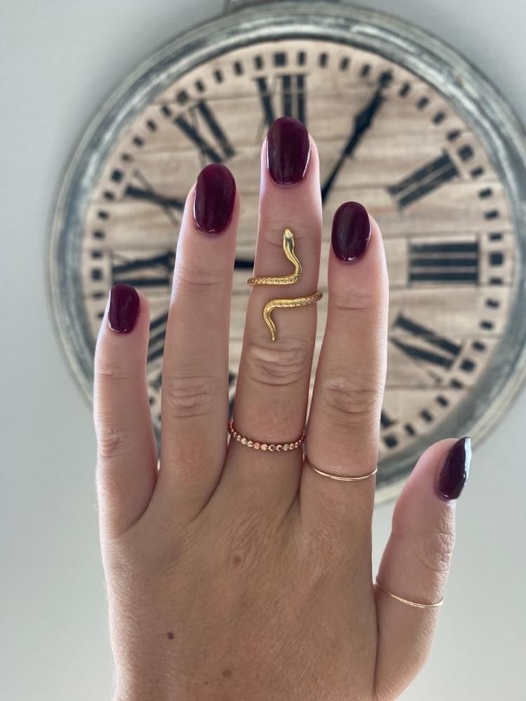 The deep color of this moody Very Peri is perfect for autumn or winter but still looks gorgeous year round. It's Merlot for your fingertips featuring CL40 Deep Wine dip powder. Image by Elizabeth.