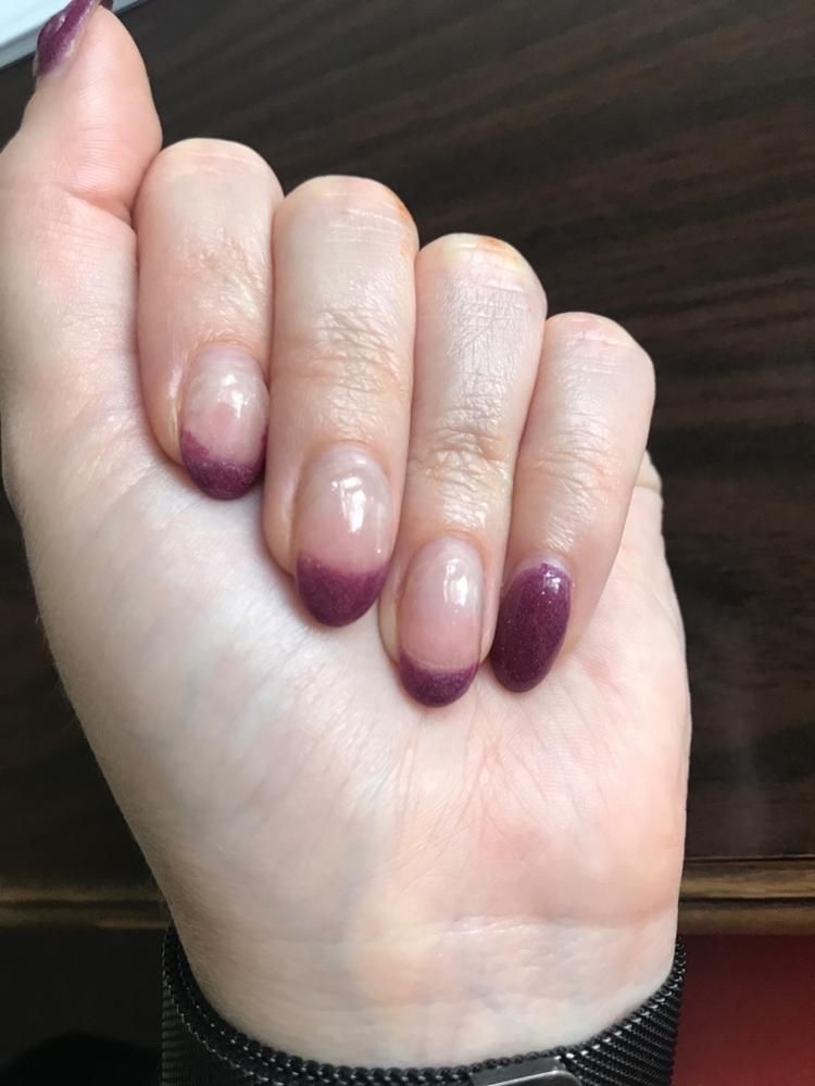 A pop of rich purple color featuring CL13 Pearlescent Grape dip powder. Image by Margaret S.