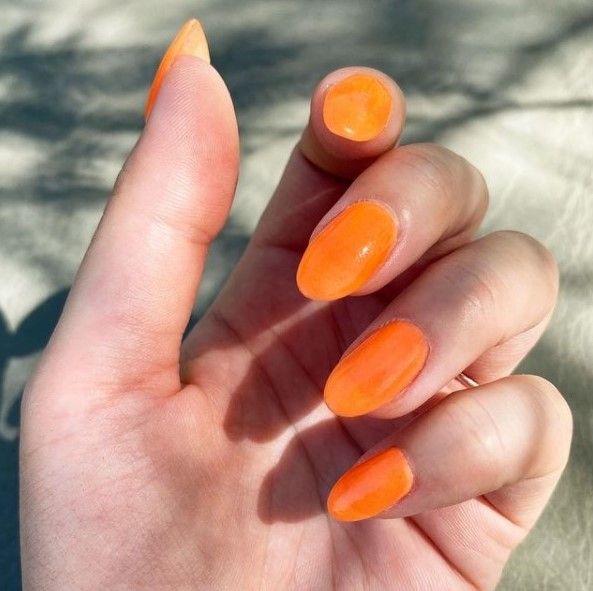 With this dip powder, your glow in the dark nails will go from Gorgeous Orange to Pretty In Pink at the flick of a switch. For Halloween, you can do a color-changing candy corn or pumpkin nail art. Because why only have one shade when you can have two.