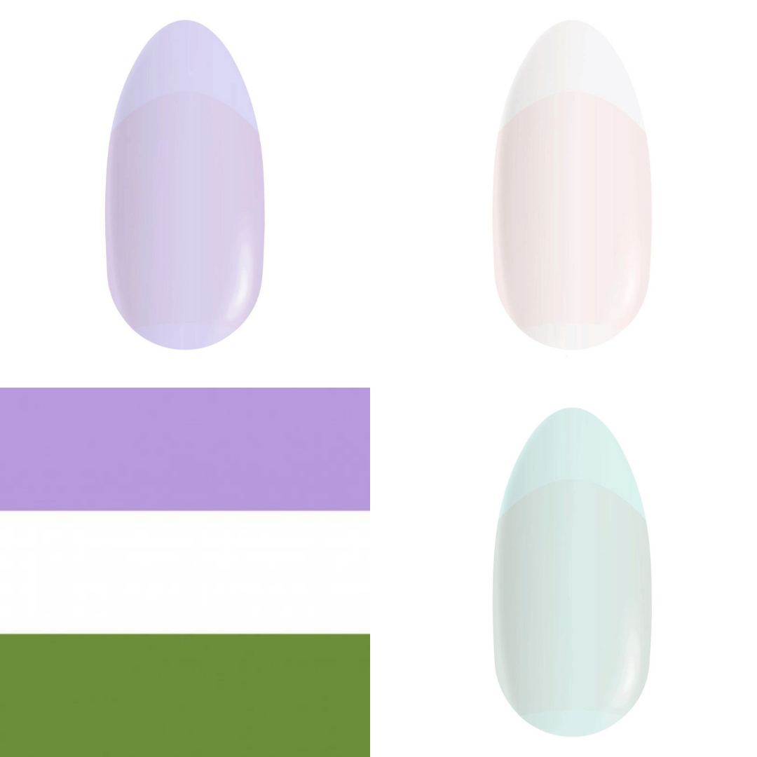 Want to wear your pride through your dip nails? (We're also looking at you, dippers who do male menicures.) Let's take inspiration from the various versions of the pride flag. FYI: The Gilbert Baker creation has been updated numerous times to make sure different communities and causes are represented.